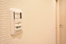 玄関ドア横にはテレビモニター付きインターホンが設置されていて、お部屋の中から訪問者をチェックする事が出来ます。返事をする前に確認する習慣をつけるといいですね。