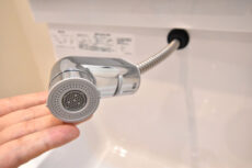 水栓のヘッド部分は引き出せるので洗面ボウルを流したりに便利。寝ぐせ直しくらいなら出来るかも(笑)