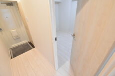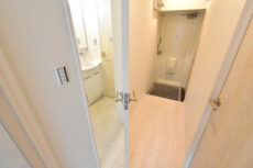 こちらには、洗面台の他に洗濯機スペース、浴室、トイレがまとまっていて、脱衣所も兼ねています。