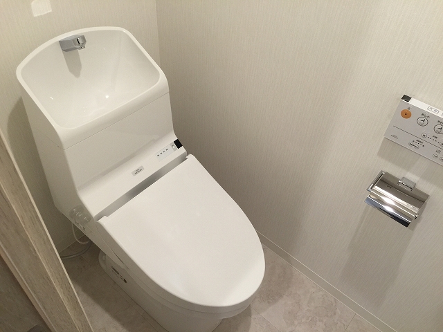吊戸棚が設置されていますので、トイレットペーパーのストックや掃除用品など、生活感がにじみ出がちなグッズをスマートに収納しておけますね。