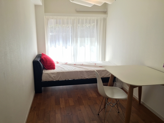 廊下反対側には、洋室が2つ。まずは約10.3帖の洋室♫南向きの窓の大きなお部屋です。写真の様にベッドを置いても、ソファやテーブルを置くスペースもゆうゆうあります。