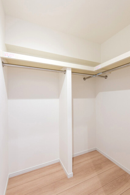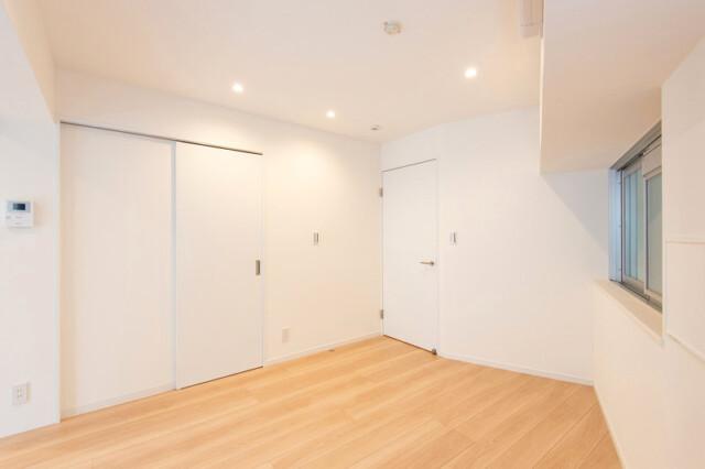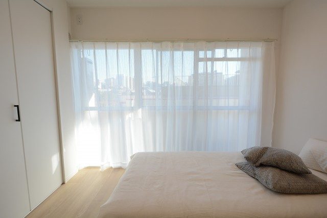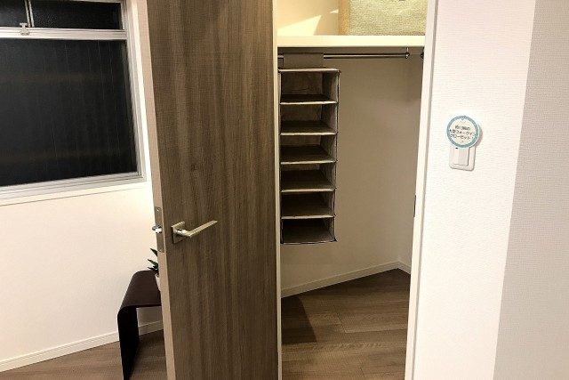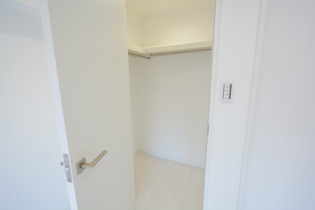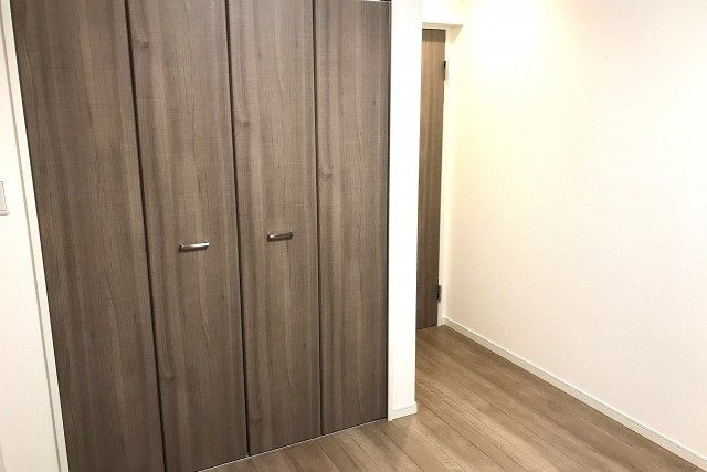 収納はクローゼット。間口が広いタイプで使いやすそうですね。奥行きもあるので衣装ケースなどで収納力をアップさせるのもおススメ。窓の外は外廊下なのでしっかり面格子が設置されています。