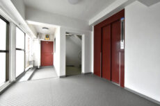 8階までエレベーターで上がり、明るい外廊下を通ってお部屋へ向かいます。