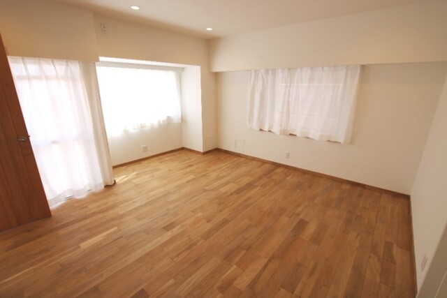 こちらは廊下に出入り口がある約12.8帖の洋室です。洋室で10帖超の広さがある物件はなかなかありませんよ!かなり広々としています。南西・北西に窓があり、採光・通風もしっかり確保できています。