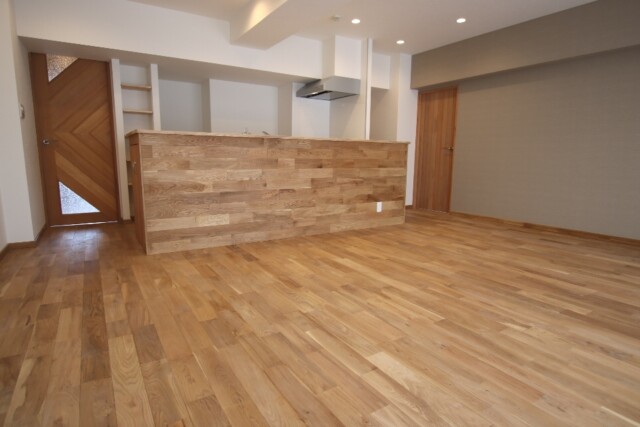 玄関を入ると木がふんだんに使われたインテリアが目に飛び込んできます。こちらで使われているのは無垢材です。建具・巾木まで無垢材が使われている物件は希少です。