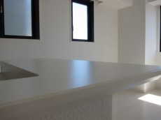 大型の洗面台です。継ぎ目のない白い洗面器は清潔感があります。