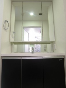 スクエア型でオシャレです♪鏡の裏と下にも収納がたっぷりあります。