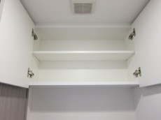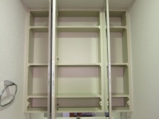 左側にも収納があり、こちらは浅めの棚になっています。(写真中央)