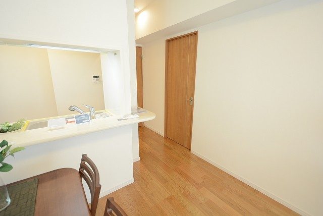 キッチンのスペースが広くとられているので、後ろに冷蔵庫だけでなく戸棚なども