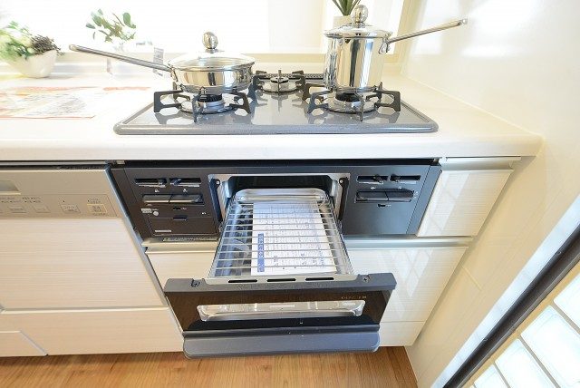 グリル付きの三口ガスコンロです (´∀`*)~♪