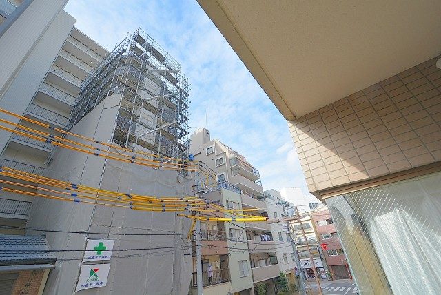 前に工事中のマンションがありますが…目の前の道路自体は車通りもそんなに多くなさそうです(‘ω’)ノ