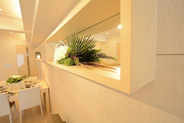 幅、奥行き共に広めにスペースをとっているので、冷蔵庫や食器棚を置いても余裕がありそうです。