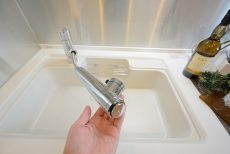 浄水機能付きの水栓、3口のグリル付きガスコンロが付いています。