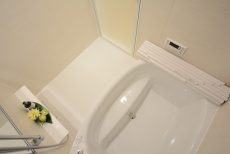 お風呂には追い焚き機能が付いています。この機能があればいつでも熱いお風呂に入ることができますね! 帰宅が遅くなっても、朝ぶろでさっぱりしたくなっても、問題なくたっぷりのお湯に浸かることができますよ!!