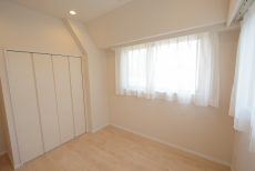 こちらは約5.3帖の洋室です。白を基調とした内装で、すっきりとした印象に。バルコニーに出入りもできて便利です◎