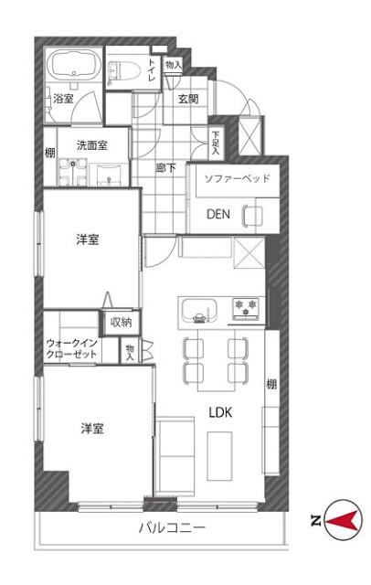 DENはLDKに隣接していることが多いのですが、こちらは独立性の高い位置にありお仕事の時などには便利そうですね。