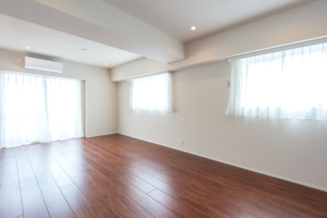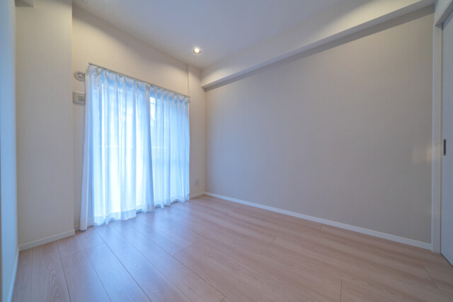 南向き窓と東向きバルコニーに面した窓とに囲まれたとても明るいお部屋です。シンプルにナチュラルカラーでまとめられたお部屋には、カーテンや家具などのインテリアも幅広くチョイスできそうですね。