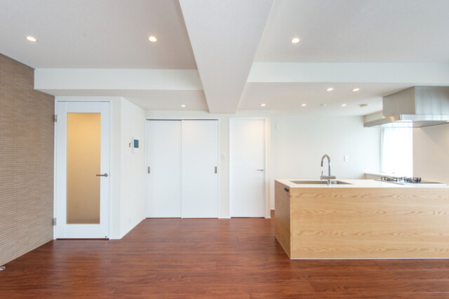 今回ご紹介するお部屋は9階、専有面積73.79㎡の3LDK。南東角部屋のファミリータイプのお部屋です。15帖超の広々リビングには床暖房が設置され冬でも快適♬