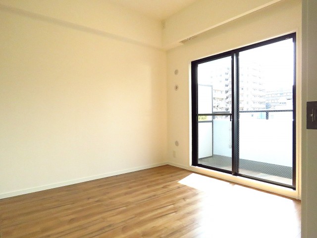 こちらの洋室からはバルコニーへ出られるようになっています。西向き。