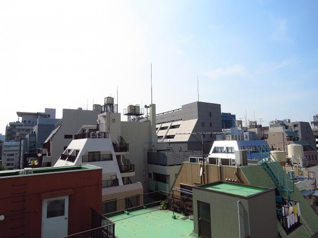 外はマンションやビルが建ち並ぶ風景。高い建物はないので開放感があります。