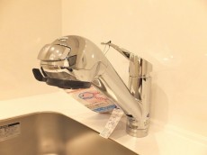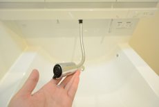 水栓はシャワーヘッドタイプなのでノズルがのびま~~~す。