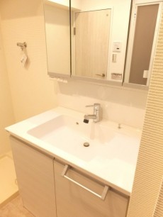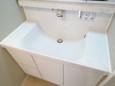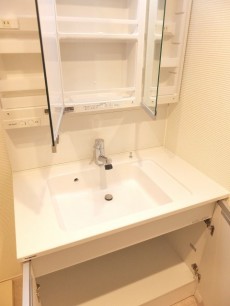 洗面化粧台も鏡の裏、引き出しと収納場所が豊富。