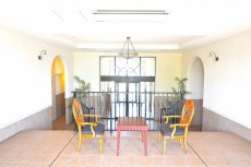 階段を上がってエントランスホールを抜けると駐車場への出入り口もこちらにあります。