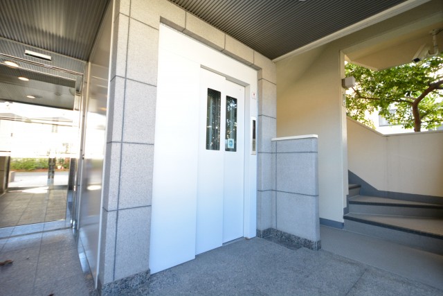 オートロックの自動ドアを抜けると、エレベーターがあります。こちらのエレベーターでお部屋へ向かいます。