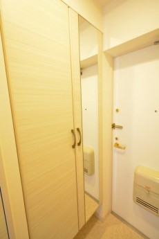 玄関入って右手、トールサイズのシューズボックスです☆棚が可動式になっていますので、ブーツの収納もOK♪♪扉には大きな姿見があるのでお出かけ前のチェックもバッチリです(o´∀`ノ