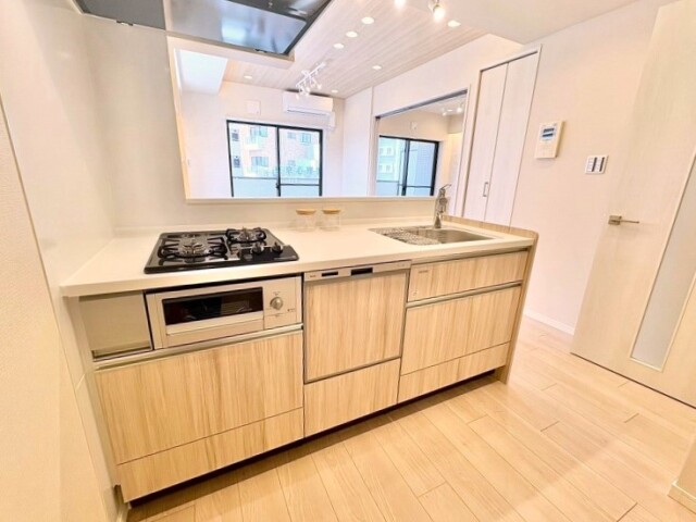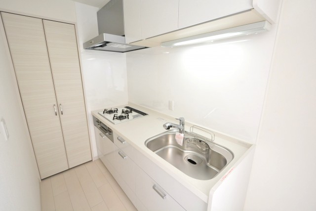 上下に収納があり大小様々な調理器具もたっぷりしまえます◎ワークトップが広く、3つ口コンロはお料理好きの方には嬉しいですね。リビングを見渡しながらお料理ができるのもポイントですよ♪