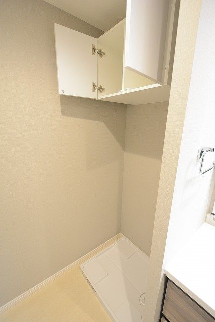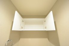 吊戸棚も付いているのでトイレットペーパーといった消耗品などの収納場所にも困りませんね ( ´∀`)b