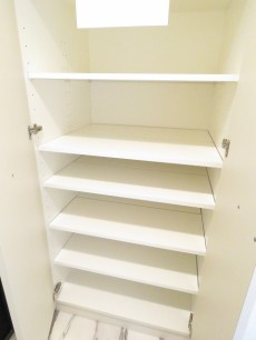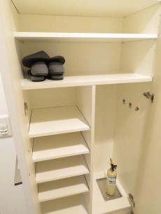 玄関ホールの左右にはシューズBOXと棚付きの物入れが設置されています。靴をはじめ、傘、日用品のストックなどまとめてこの中に仕舞っておけそうです。