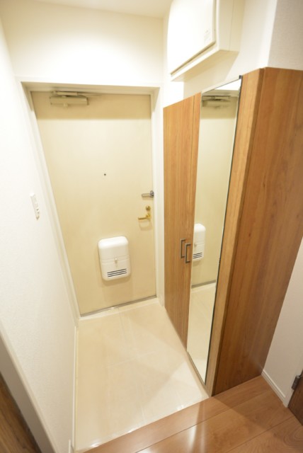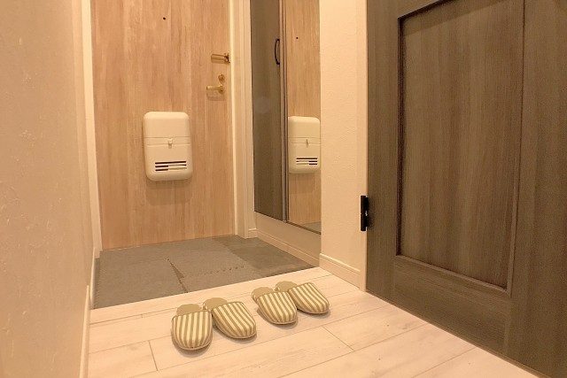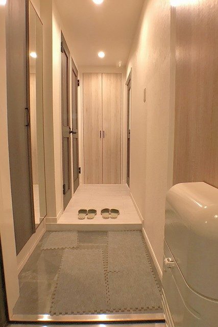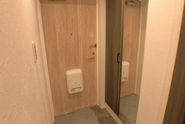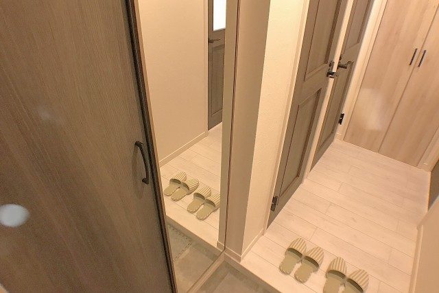 玄関の姿見は、お出かけ前の身だしなみチェックに活躍すること間違いなし!