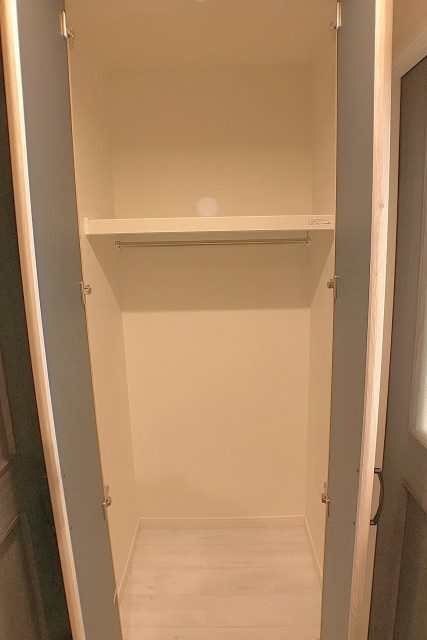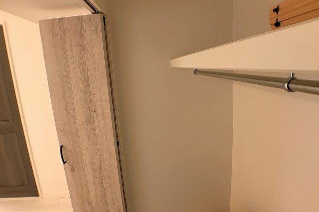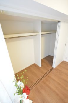 クローゼットは奥の壁一面を使ったビッグサイズ。幅だけでなく奥行きも十分です。キャリーバッグやスーツケースなどの嵩張る物も楽々収納出来ますよ。衣装ケースなどを置けば更なる収納力アップも可能です。