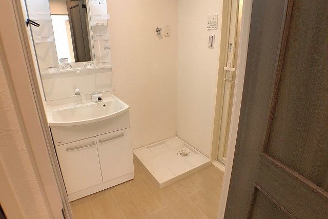 ■洗面所・・・洗面化粧台 (Panasonic)、洗濯水栓、防水パン