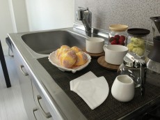 壁付キッチンは収納も上下にあり、作業スペースもきちんと確保されているので料理もスムーズに出来そう♪