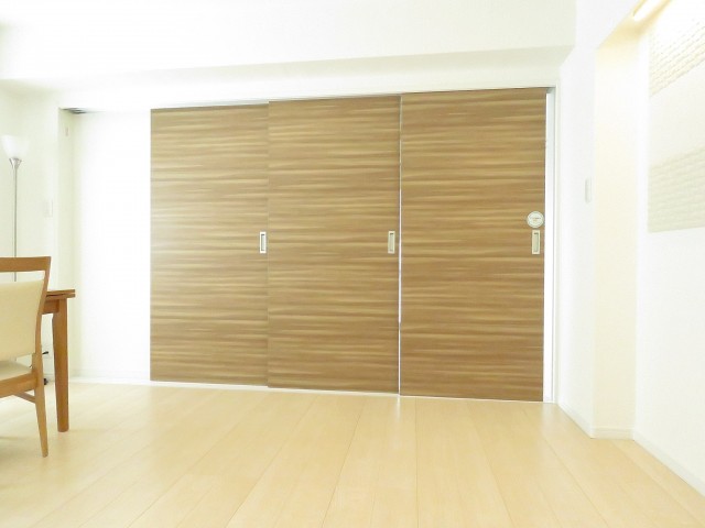 洋室はLDKに隣接しており、2部屋は3枚の可動扉で仕切られています。
