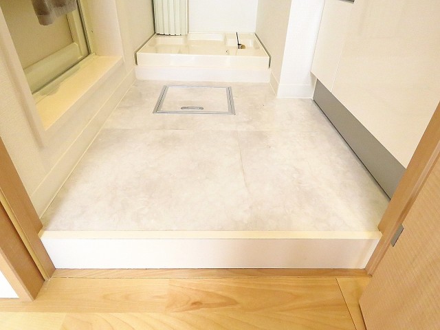 洗面室はLDK内に扉があります。キッチンとも距離が近いのでお料理しながらお洗濯、お風呂の支度などなど家事もまとめてこなしやすいのではないでしょうか。