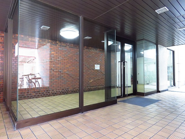 ガラス張りで開放感のあるエントランス。日勤で管理人さんもいます。
