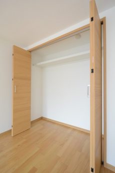 収納はクローゼット、前のお部屋と同じく間口の広いタイプです。