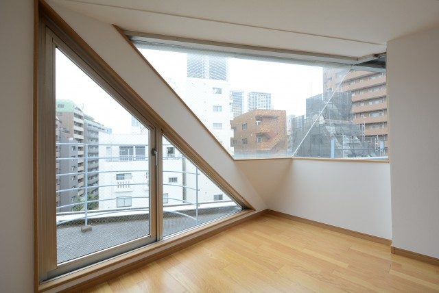 6階なので、妻側の窓からの眺望は開けています。お隣の建物の屋上が見えますね!