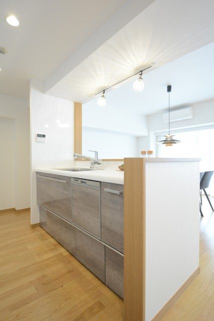キッチンにはダイニングテーブル代わりに使えるカウンターが設置されており、その分リビングスペースを有効的にご利用いただけます。