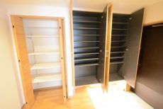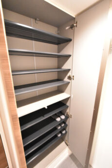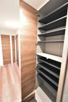 トールタイプのシューズボックスが二つ、隣には収納がありました。いつもですと収納力が…とか言う所ですが、これだけ広いお部屋ですとそればっかりになってしまいそうなので、今回は止めておきます(笑)