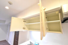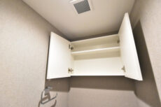 上部には吊戸棚がありますので、こちらにトイレットペーパーのストックを収納していただくなど、便利にお使いいただけます。
