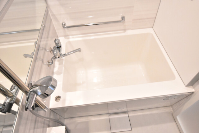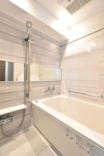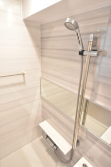 浴室は大理石調のパネルが採用されており、スッキリかつ高級感があります。