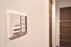 玄関の照明は人感センサー付き。人の動きを感知して照明が点灯するので、夜など暗闇の中でスイッチを探す手間が省けます。消し忘れ防止にもなるので省エネにつながります。