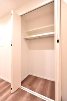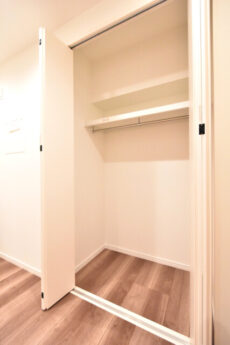 このお部屋の収納はクローゼットでした。間口が広くて使いやすそうです。