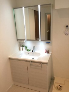 洗面室は脱衣所も兼ねているので、脱いだお洋服はすぐに洗うことができますね!!