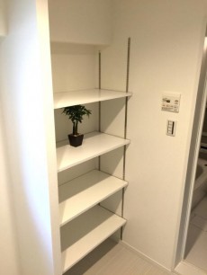 バスルーム横には、可動式の棚が設置されています♪♪リネンの収納もバッチリです