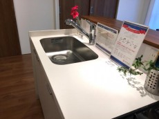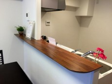 大きな人造大理石のワークトップは、使い勝手が◎キッチンカウンターも嬉しいです♪♪